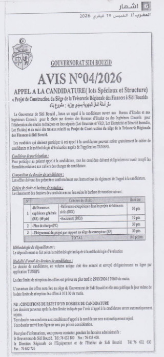 اعلان طلب عروض كتب بواسطة messaoud guedriالتاريخ: 2026/02/20فى :طلبات العروض و الإستشاراتاترك تعليق1 مشاهدة