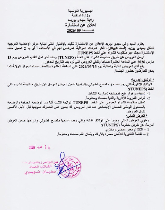 اعلن عن استشارة كتب بواسطة messaoud guedriالتاريخ: 2026/02/26فى :طلبات العروض و الإستشاراتاترك تعليق2 مشاهدة