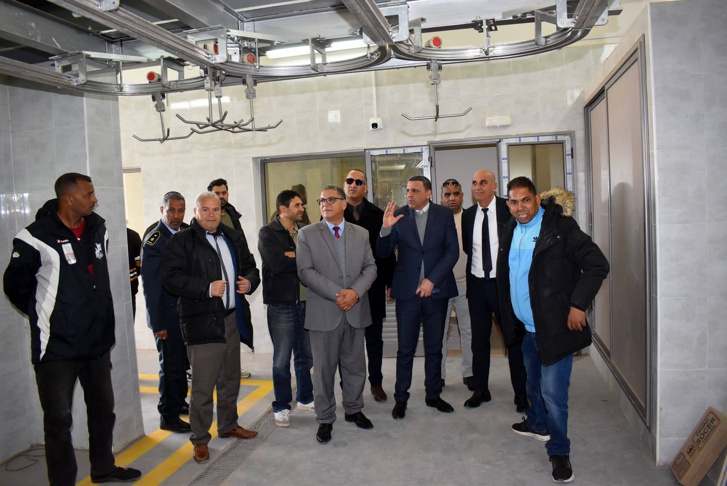 والي سيدي بوزيد السيد فيصل بالسعودي يعاين وصول التجهيزات الخاصة بمشروع المسلخ البلدي بسيدي بوزيد، استعدادا للانطلاق في تركيبها، مصحوبا في ذلك بالمعتمد الأول للولاية السيد علي سلّامي والكاتب العام للولاية السيد سفيان ضويوي ورئيس دائرة الشؤون البلدية بمركز الولاية السيد نور شكري وممثل البلدية.